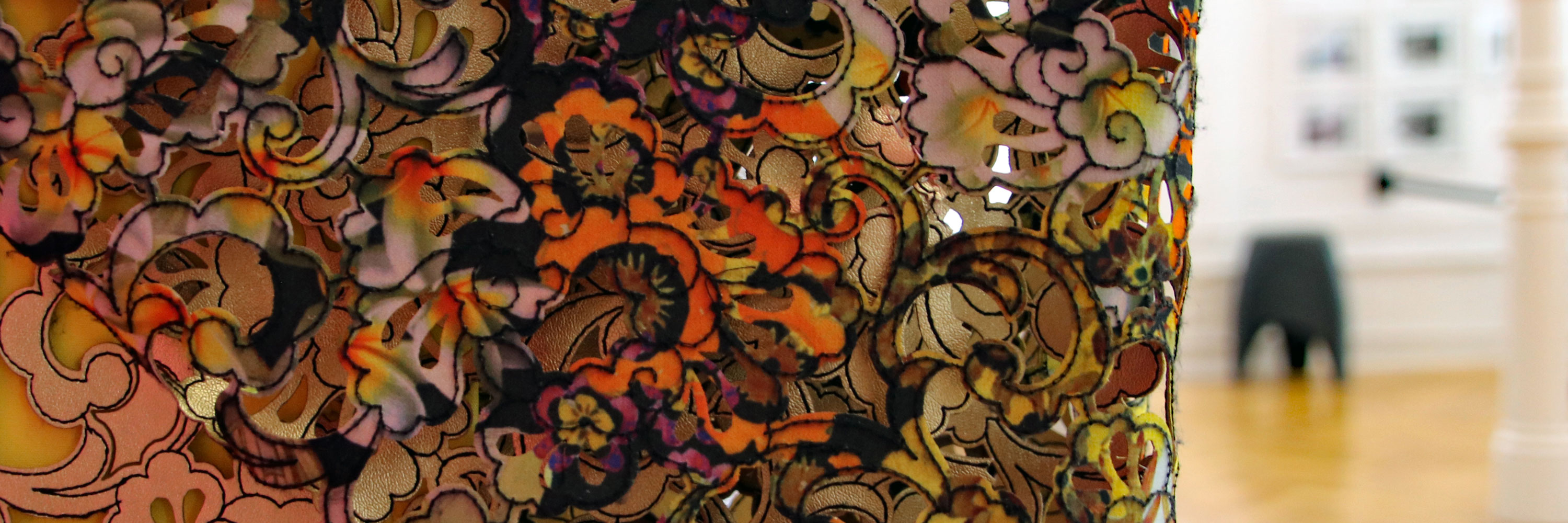 In der für das Textilmuseum St. Gallen konzipierten Installation «GOLD _ Zimmer #0» lotet die Künstlerin Alessandra Beltrame die Trennungslinie zwischen dem Gewöhnlichen und dem Unerhörten aus. Sie hüllt alltägliche Objekte in Goldleder und spielt mit der Wahrnehmung des Betrachters. Dabei entstehen neue gesellschaftspolitische Bezüge. Die Künstlerin webt somit einen Parcours der Übersetzung, wie sie es selbst beschreibt, «indem die Wahrnehmung jenseits der sicheren Begrenzung des Gewohnten verschoben wird, um so beim Betrachten das Formulieren einer anderen Lesart, einer scheinbaren Realität zu ermöglichen.»