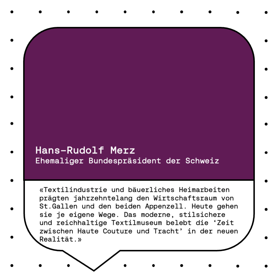 • Neben dem Stiftsbezirk ist das textile Erbe gleichermassen identitätsstiftend für die Bevölkerung der Stadt St.Gallen und der gesamten Ostschweiz.
